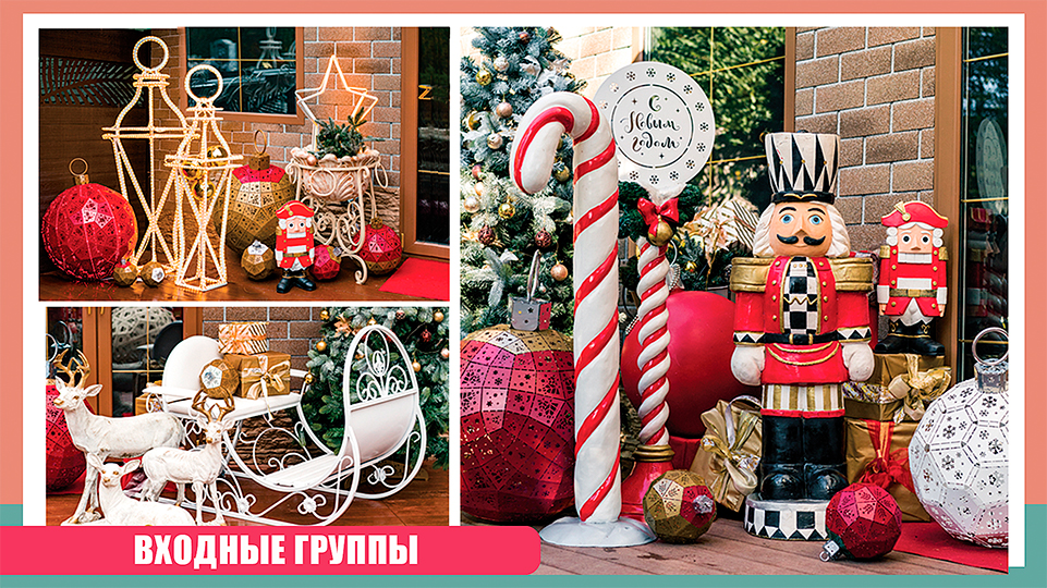 → Модели: шары 80–100 см, олени, Дед Мороз, фонари