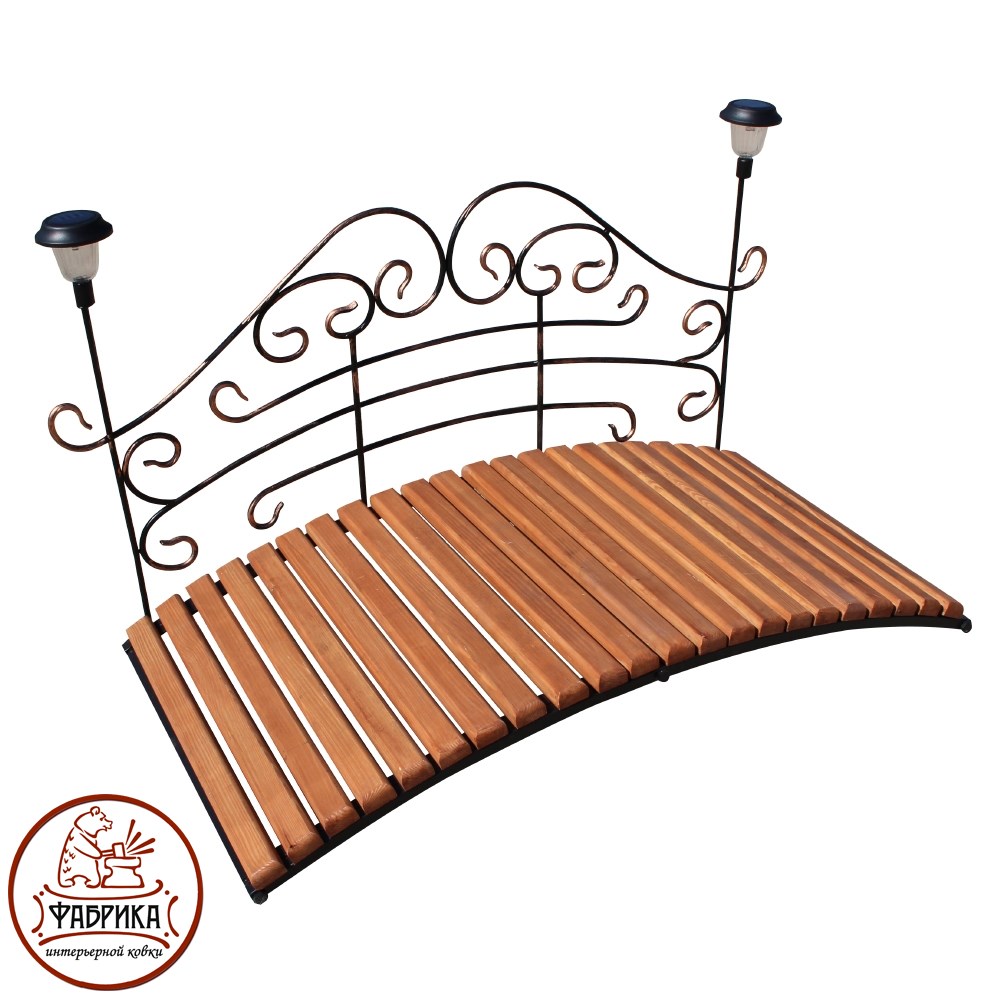 Декоративный кованый мостик 862-02R может служить переправой, через небольшой ручеёк на учаске. Так же данная модель будет отично сочитаться с «сухим ручейком». Прочная и надёжная конструкция без турда выдержит вес нескольких взрослых людей. Все деревянные элементы обработанны специальными влагостойкими составами.