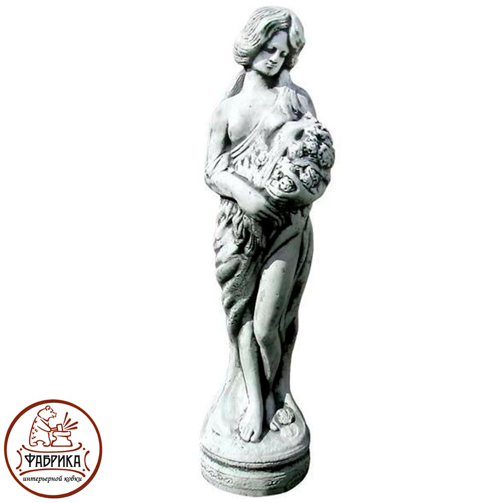 Интерьерная скульптура Девушка с цветами. Композитный материал изготовления. Фигура подходит для декора спальни, гостиной, кабинета, офиса, холла.