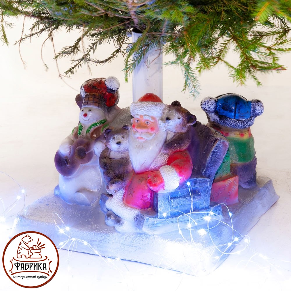 Подставка изготовлена из ударопрочного материала, невероятно надежная и устойчивая. Внутри корпуса расположен металлический цилиндр, в котором ствол деревца прочно фиксируется удобными зажимами. Уникальные свойства стеклопластика и современные краски, не теряющие со временем своей яркости, позволяют использовать изделие не только в помещении, но и в условиях улицы. Подставка устанавливается очень легко, имеет небольшой вес и при этом все фигурки объемные и с поразительной реалистичностью передают все черты и настроение персонажей.