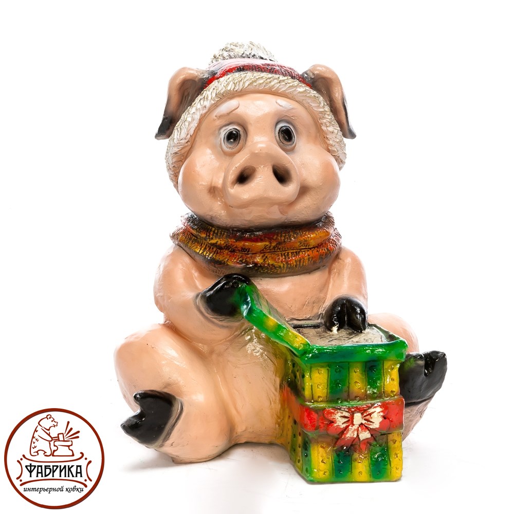 Вместительная копилка Поросенок с подарком станет прекрасным хранителем сбережений и украшением интерьера. Материал изготовления: полистоун.