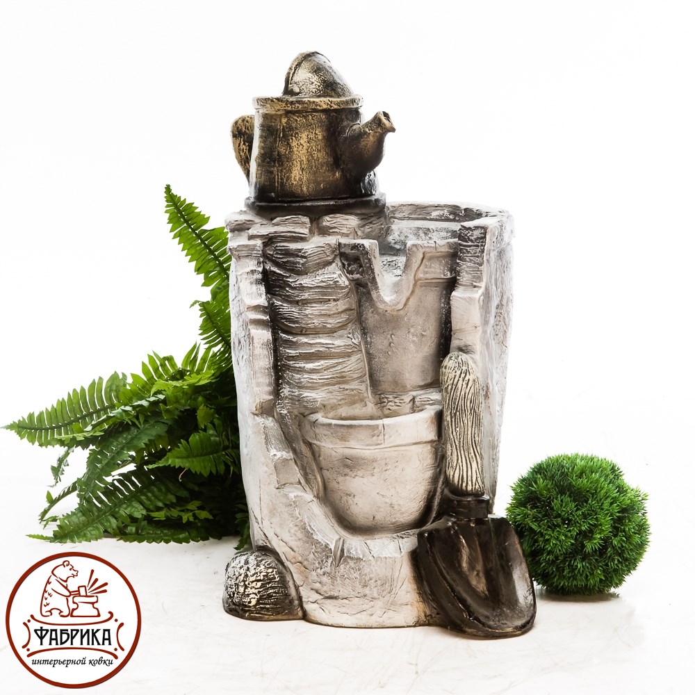 Фонтан для декора садового или дачного участка. Материал изготовления: стеклопластик. Для подключения и установки необходимы электичество и вода. Работает от сети 220V.