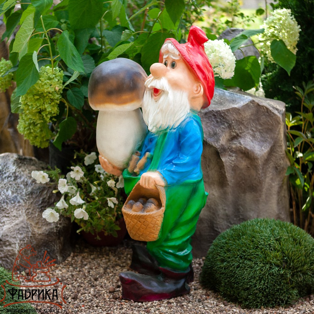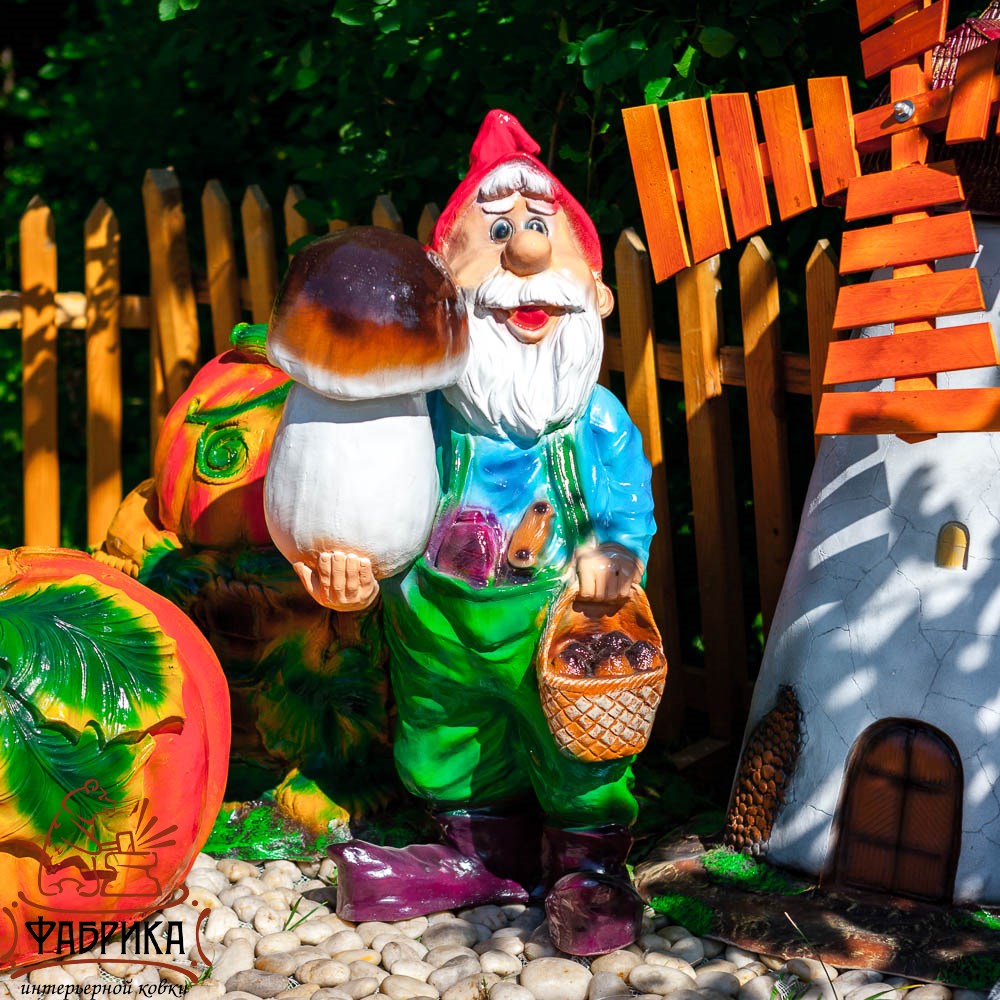 Садовая фигура Гном с грибом сделана из влагостойкого и ударопрочного материала - полистоуна. Она подходит для декора садовых и дачных участков, парков и скверов, детских развлекательных и развивающих центров, а так же детских площадок. Фигура станет прекрасным и интересным дополнением Вашего ландшафта. Тип покраски: цветной.