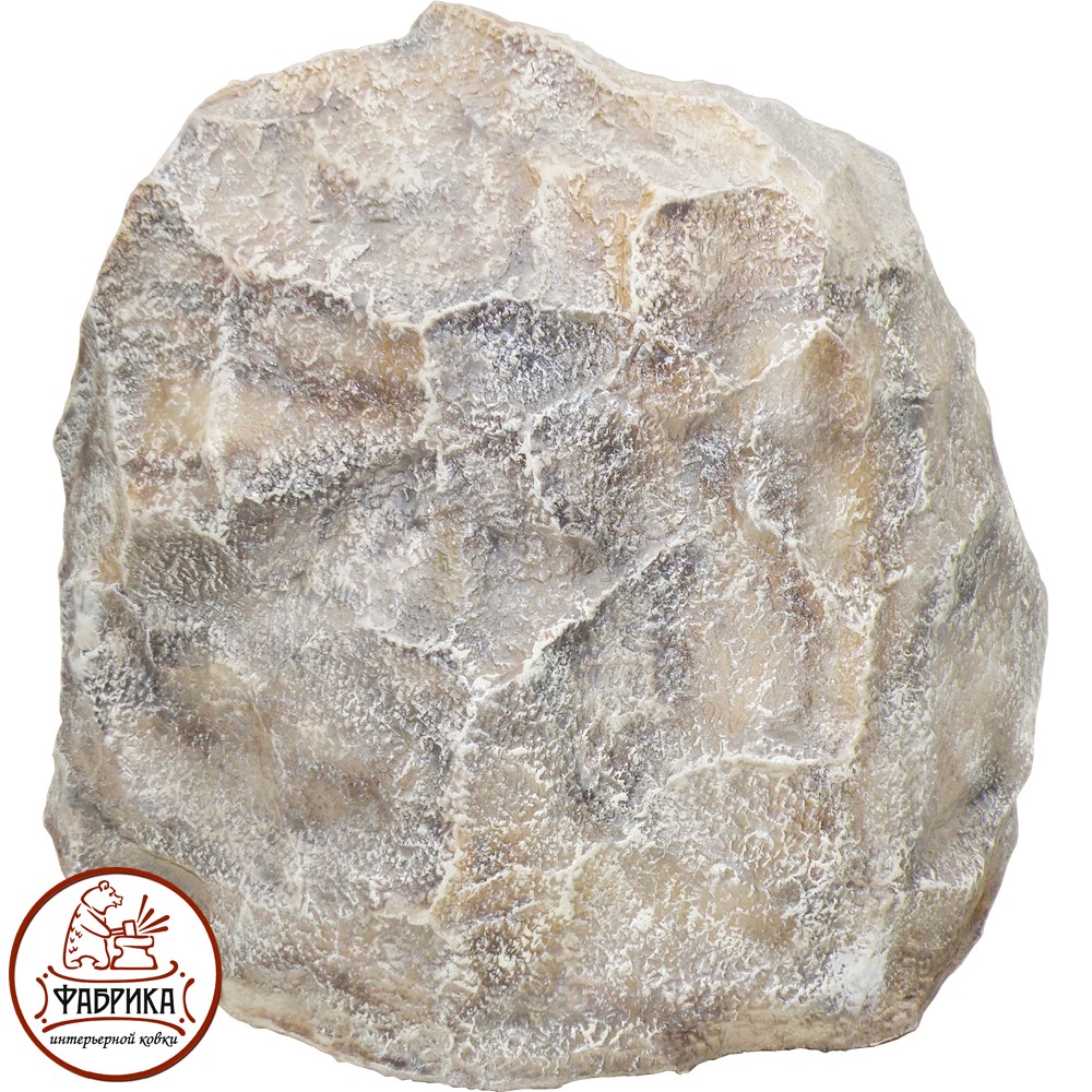 Крупный камень-валун для декорирования садовой лужайки. Натуральное сходство с природным аналогом достигается за счет рельефной фактуры и качественной покраски. Внутри декоративный камень полый, что позволяет использовать его в качестве крышки для колодца или любого другого технического отверстия на садовом участке.