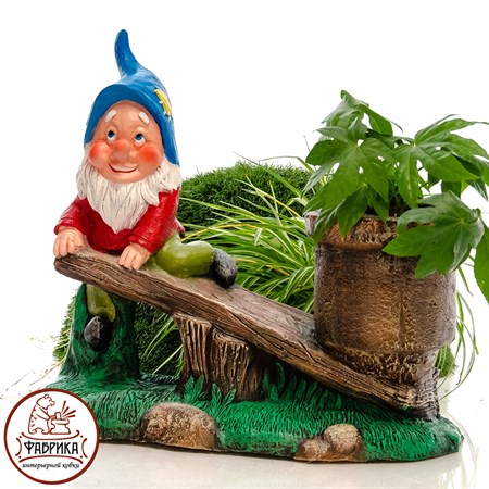 Садовое капшо Гном на качелях. Материал изготовления: стеклопластик. Пердназначено для посадки цветов и растений.