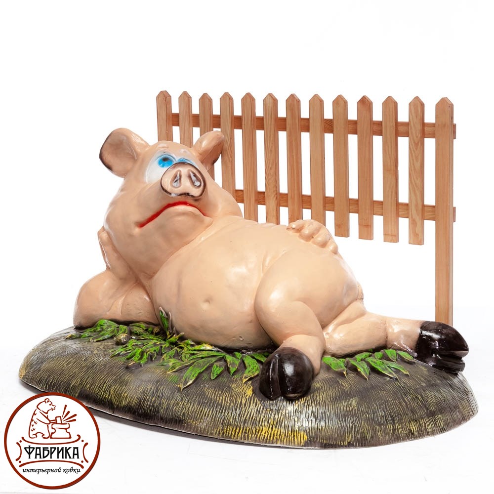Веселая свинка у забора готова закрыть собой любое техническое отверстие в Вашем саду. Фигуру также можно использовать как самостоятельный декор территории садового участка или общественного сквера, парка.