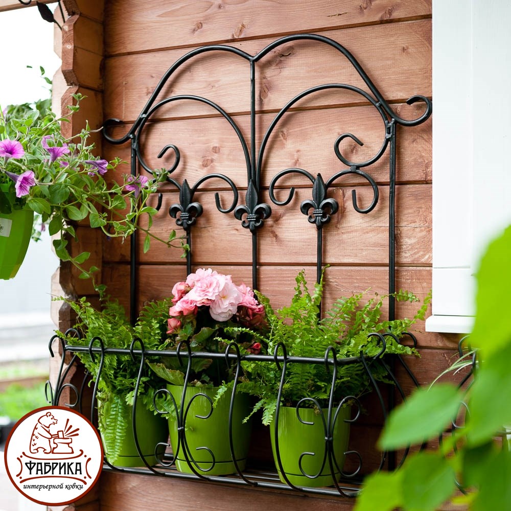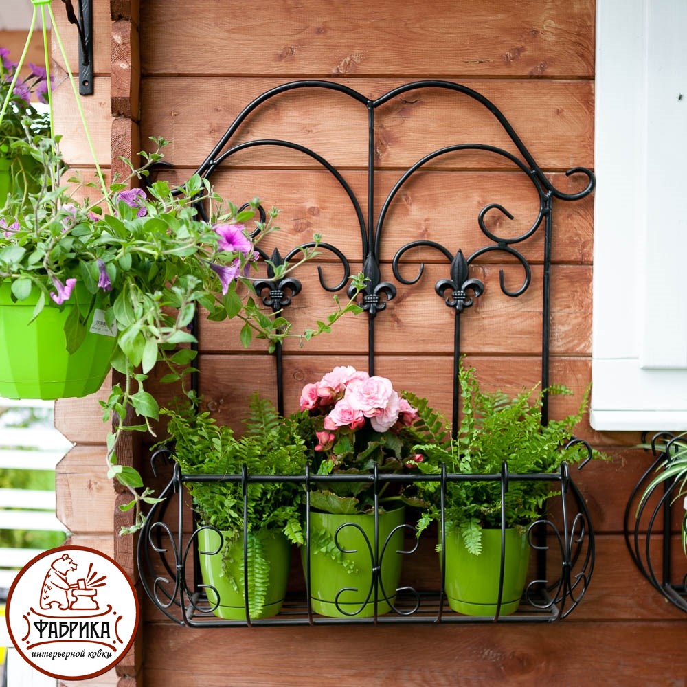 Настенная подставка для цветов - для украшения фасадов зданий. Изготовлена из металла. Покраска: черный цвет. В кронштейн размещается балконный ящик с цветами.