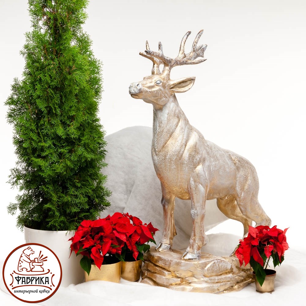 Интерьерная фигура Олень благородный - новогодняя коллекция. Композитный материал изготовления. Подходит для декора помещений, квартир, загородных домов, холлов гостиниц и ресторанов.
