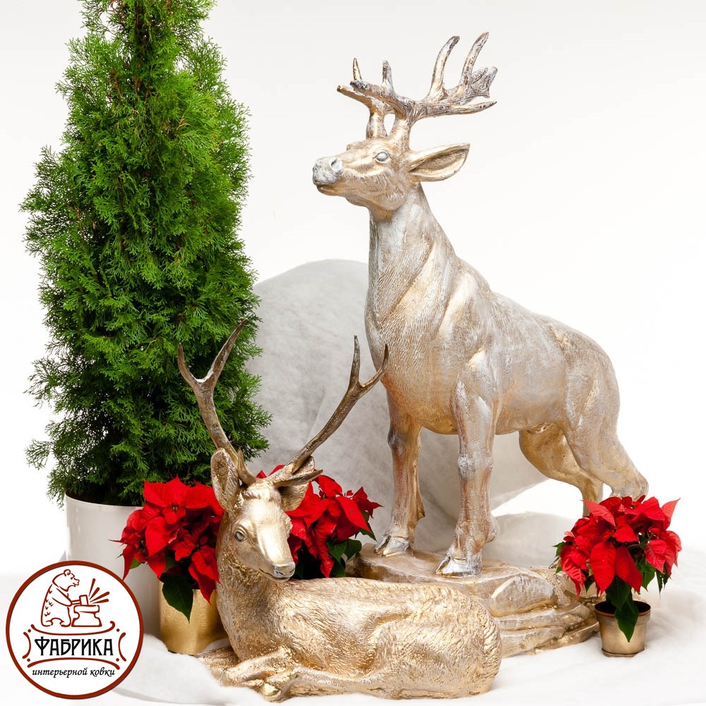 Интерьерная фигура Олень благородный - новогодняя коллекция. Композитный материал изготовления. Подходит для декора помещений, квартир, загородных домов, холлов гостиниц и ресторанов.