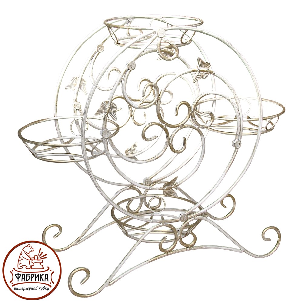 Садовая подставка для цветов 14-204, украшена изящной ажурной ковкой и сможет разместить на себе 4 цветочных горшка. Надёжная констуркция данной модели позволяет без всяких опасений размещать её в саду.