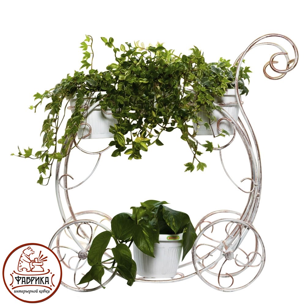 ♦ Подставка для цветов. ♦ Подходит для размещения четырех цветочных горшков. ♦ Колеса цветочницы Кареты декоративные. ♦ Материал изготовления: металл. ♦ Покраска: белый с золотом.