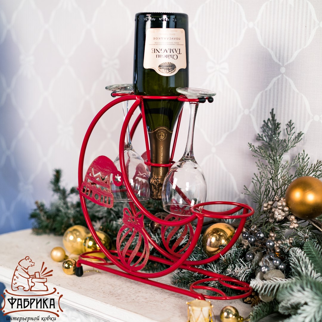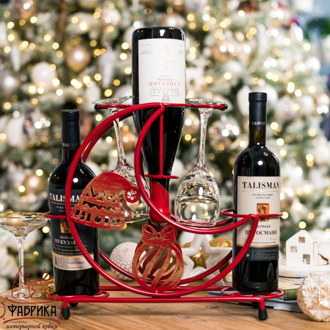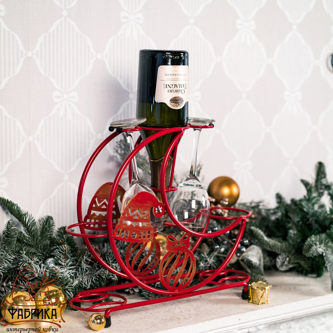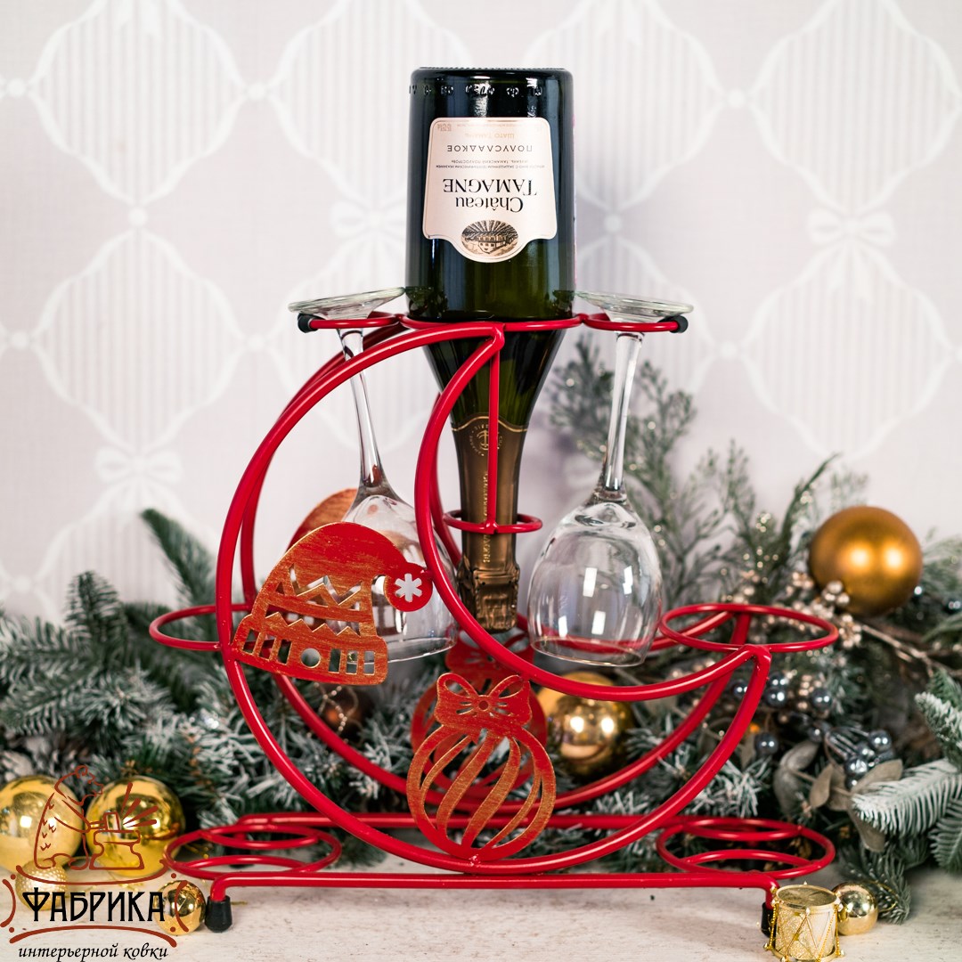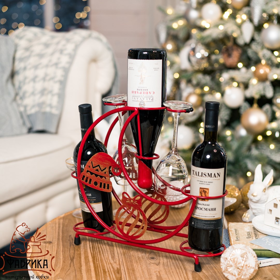 Кованая подставка служит для хранения винных бутылок и бокалов, декора праздничного стола. Крепкий металлический корпус подставки позволяет вместить сразу три бутылки с напитками и два бокала.