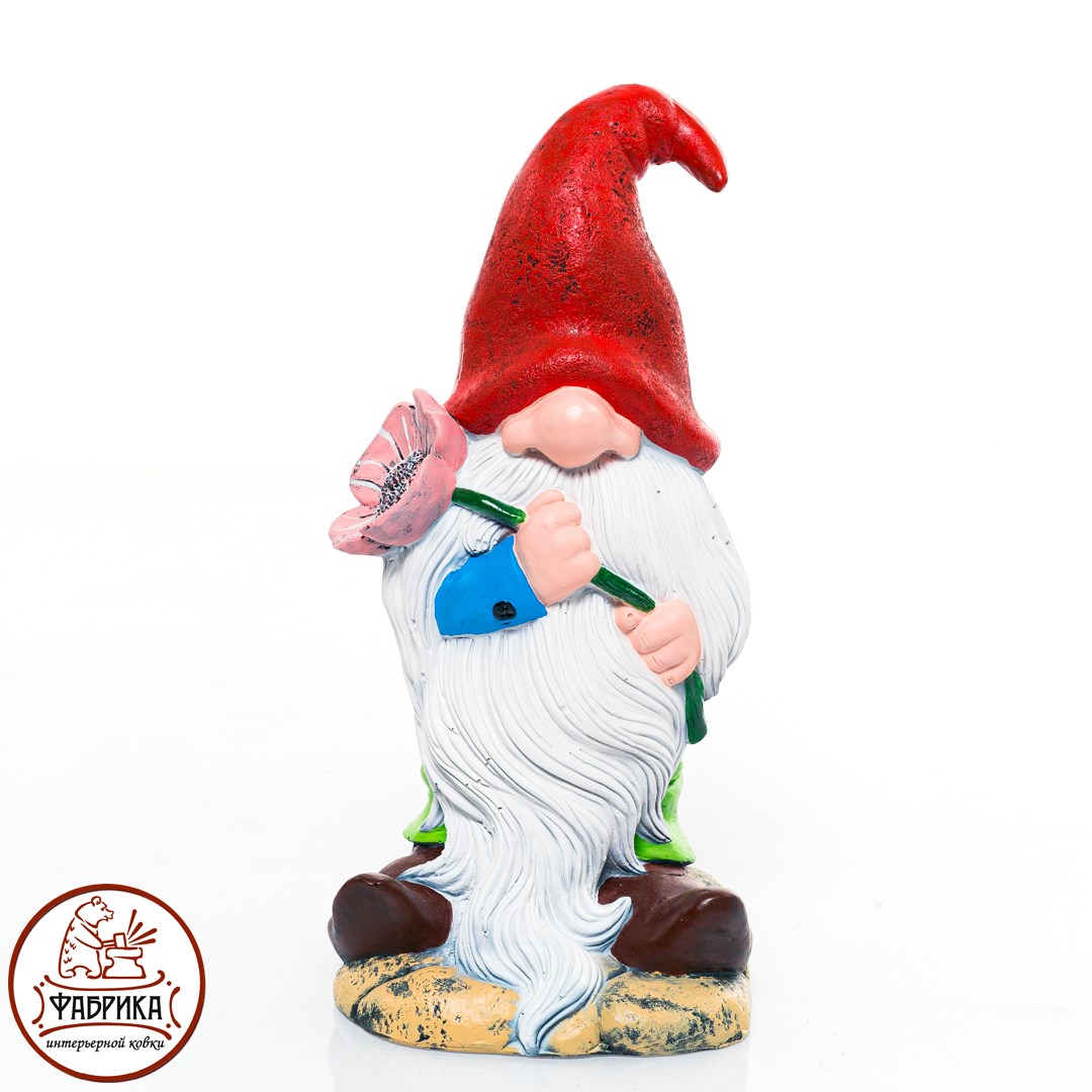 Декоративная фигура для сада Гном с цветком арт. F09319