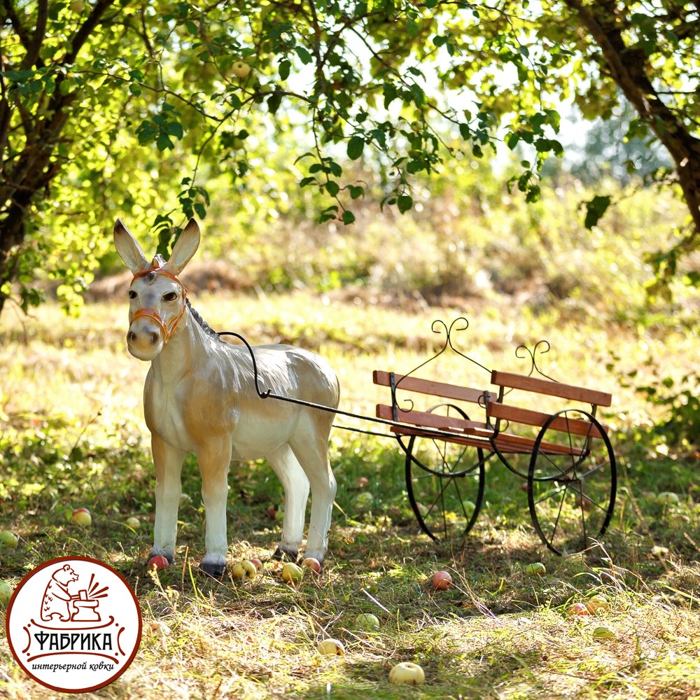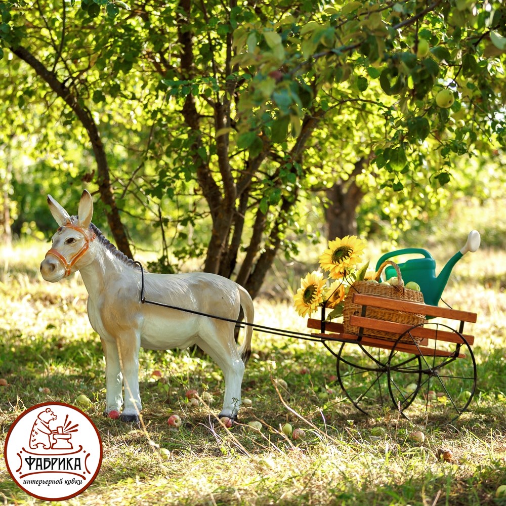 Элемент ландшафтного дизайна, предназначенный для установки цветочных кашпо и балконных ящиков для цветов. Может являться аналогом цветочной клумбы на садовом участке. К данной модели отлично подойдет фигурка Ишака, которая, будто бы запряженная в эту тележку, оживит садовый интерьер, станет ярким акцентом ландшафтной группы. Фигура сделана из полистоуна: практичного и долговечного материала.