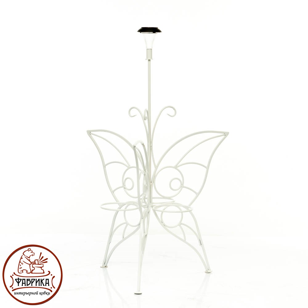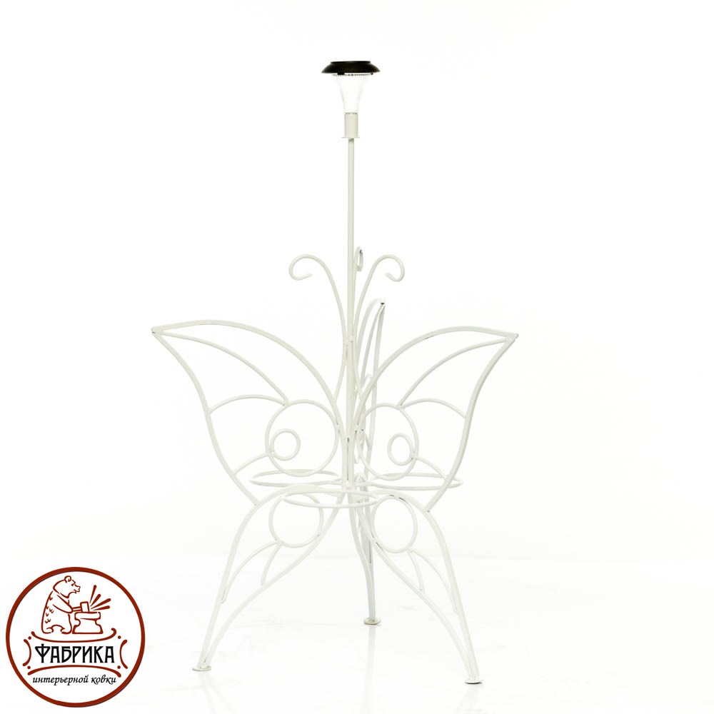Цветочница садовая в виде бабочки. В металлическое кашпо размещают горшечные растения. Устанавливать лучше садовую подставку на ровной поверхности для прочного удержания всей конструкции. В комплект входит светодиодный фонарик.