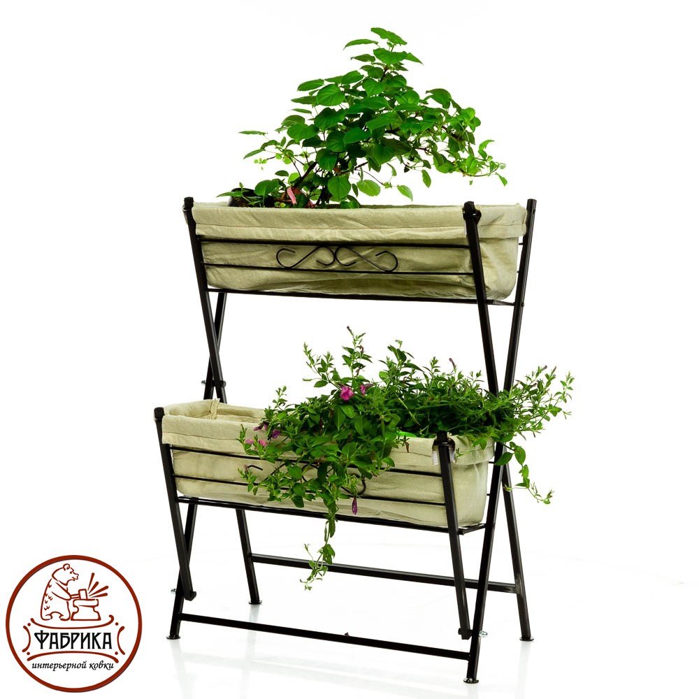 Мягкое кашпо входит в комплект. В кашпо высаживают цветы. Благодаря высоким ножкам обеспечивается удобный доступ и уход за растениями. Складной вариант подходит для перемещения цветочницы в любое место садового участка.