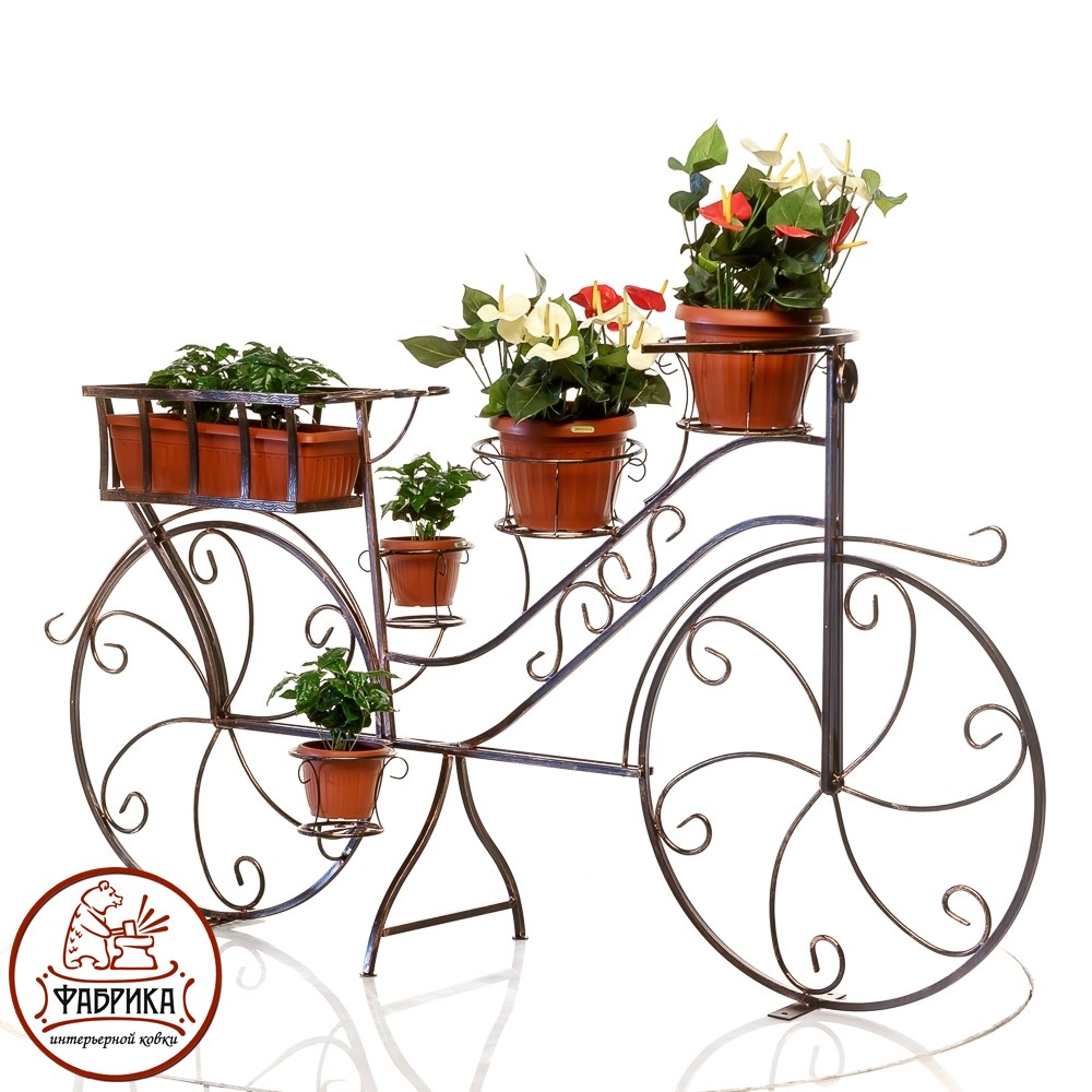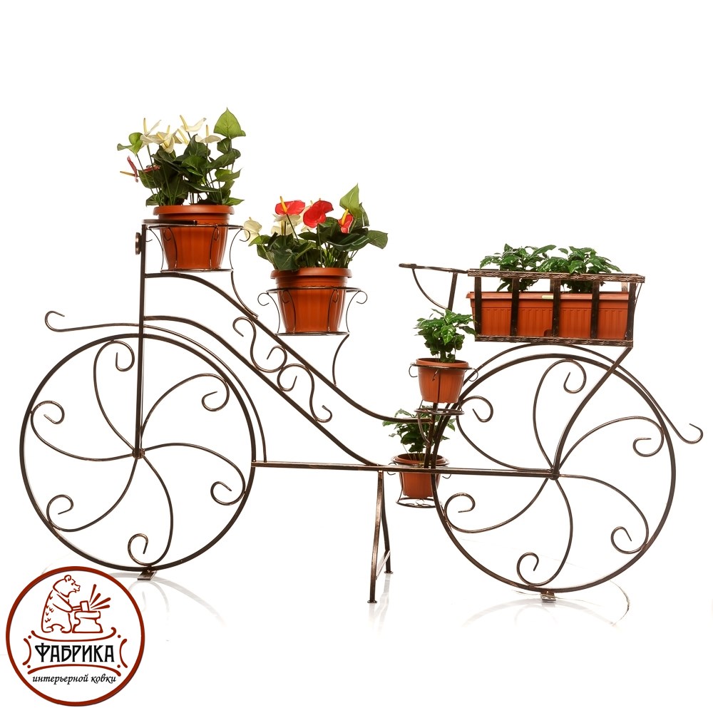 Подставка для цветов 53-604 в форме велосипеда представляет собой изящную конструкцию из кованого металла. Особенно хорошо данная модель будет выглядеть если в неё посадить вьющиеся растения. Выгодная оптовая цена, возможна поставка крупным и мелким оптом.